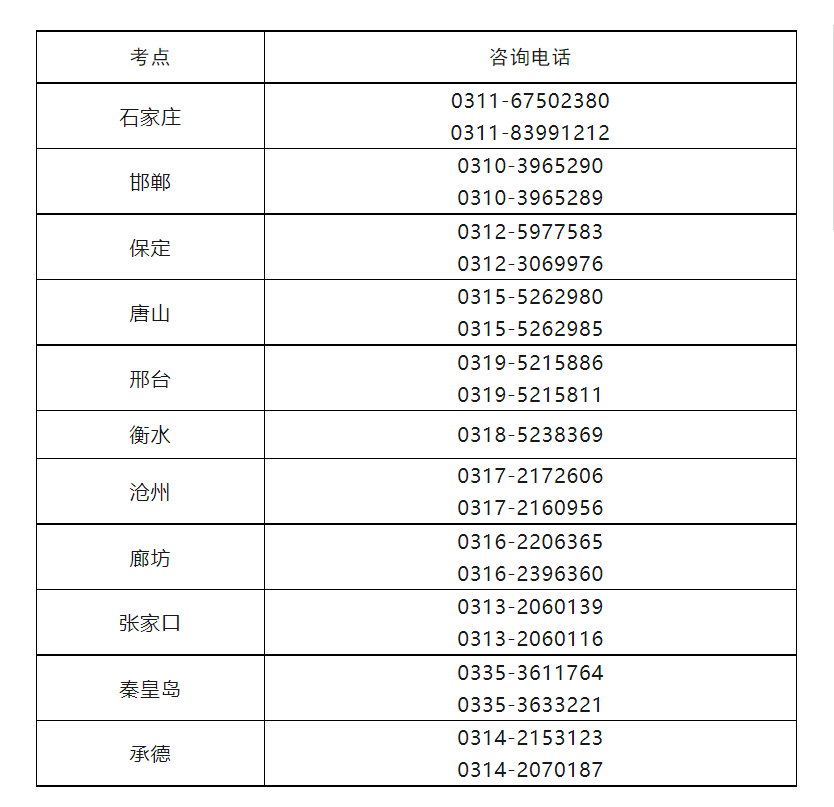 現(xiàn)將各考點(diǎn)咨詢電話予以公布,考生咨詢醫(yī)師資格考試報名相關(guān)問題,請撥打所報考考點(diǎn)的電話。