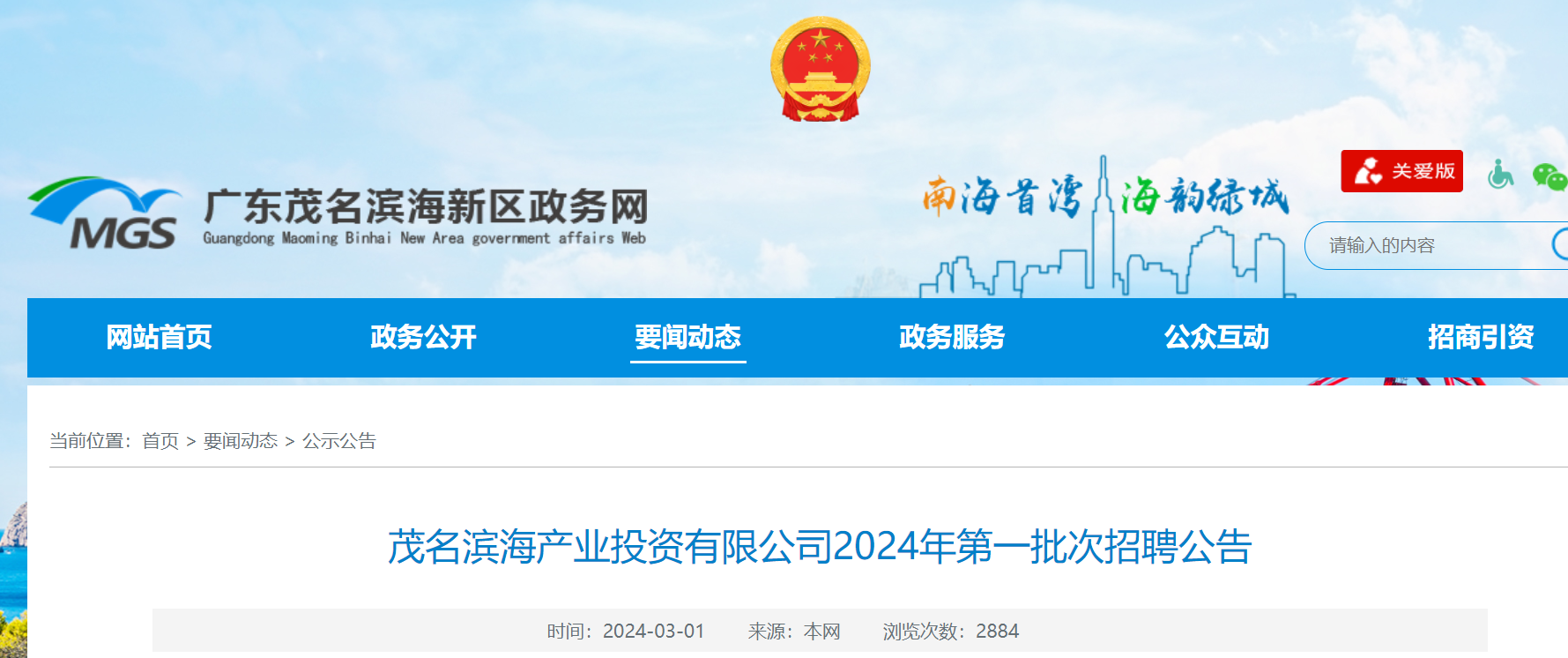 2024年廣東茂名濱海產(chǎn)業(yè)投資有限公司第一批次招聘公告已發(fā)布,報名時間:自2024年3月1日始至2024年3月7日止,共5個工作日?,F(xiàn)將招聘公告原文發(fā)布如下: