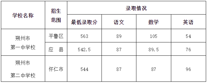 一、朔州市2024年優(yōu)質(zhì)普通高中統(tǒng)招最低錄取控制分數(shù)線