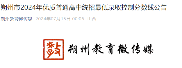 經(jīng)朔州市招生考試委員會批準(zhǔn),現(xiàn)將我市2024年優(yōu)質(zhì)普通高中統(tǒng)招最低錄取控制分數(shù)線予以公布。