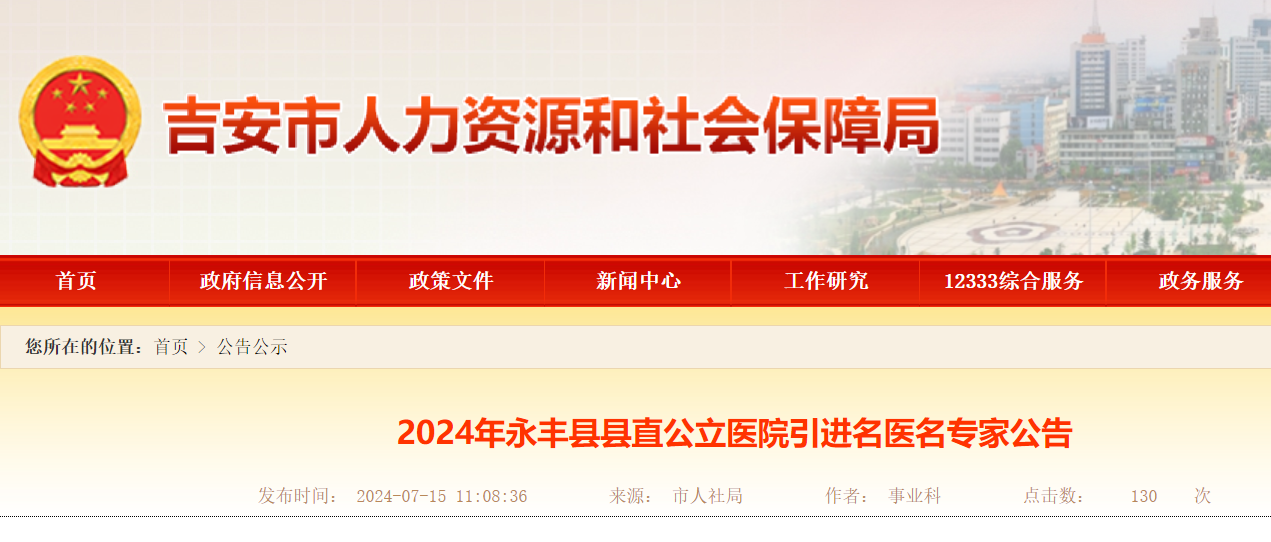 2024年江西吉安永豐縣縣直公立醫(yī)院引進(jìn)名醫(yī)名專家公告已發(fā)布,報(bào)名時(shí)間:自本公告發(fā)布之日起至2024年12月27日止?,F(xiàn)將招聘公告原文發(fā)布如下: