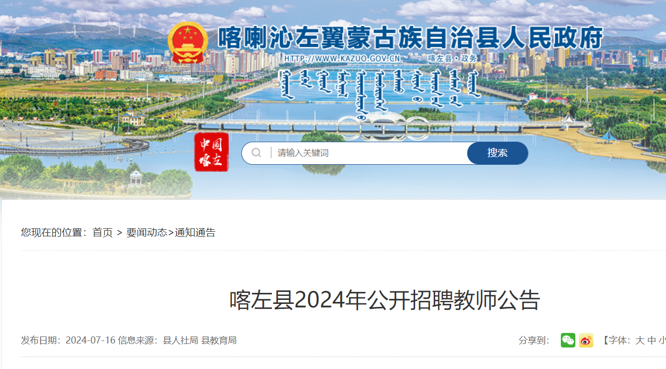 2024年遼寧朝陽(yáng)喀左縣公開招聘教師公告已發(fā)布,網(wǎng)報(bào)時(shí)間為2024年7月22日8:30時(shí)起至2024年7月26日17時(shí)截止,逾期不予受理。現(xiàn)將招聘公告原文發(fā)布如下:
