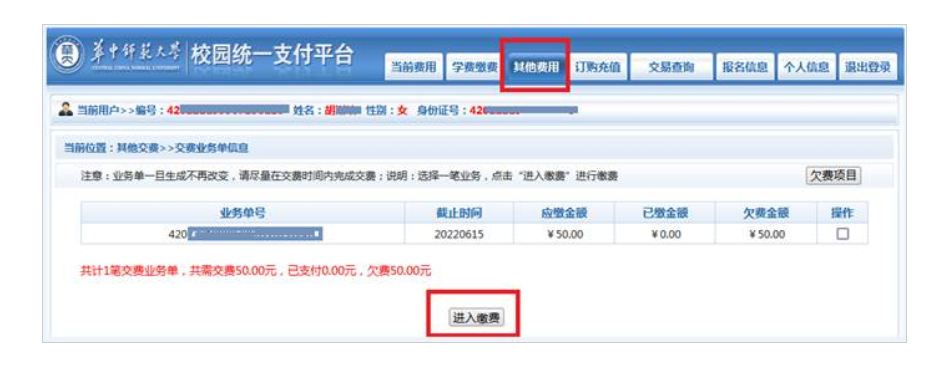 點擊“其他費用”、“進入繳費”,點擊“下一步”,選取“支付方式”,進行繳費。