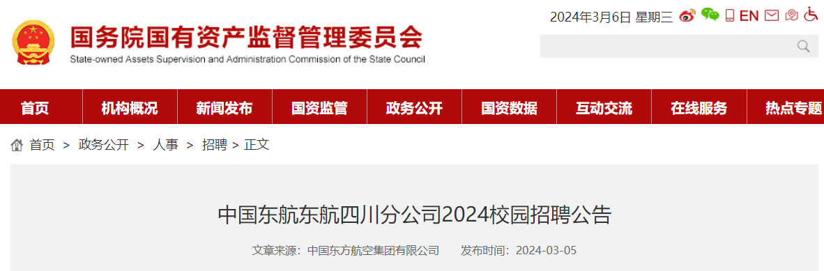 2024中國東航四川分公司校園招聘公告已發(fā)布,報名時間:2024年3月29日17:00截止?,F(xiàn)將招聘公告原文發(fā)布如下: