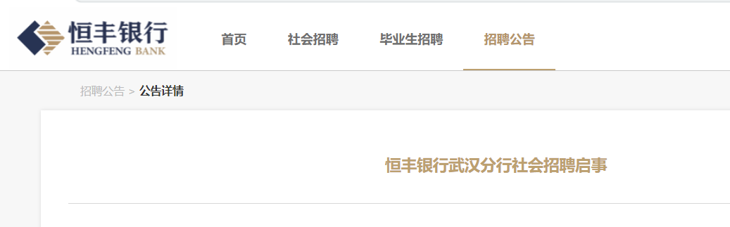 2024恒豐銀行湖北武漢分行社會(huì)招聘啟事已發(fā)布,報(bào)名截止時(shí)間:2024年3月25日?,F(xiàn)將招聘公告原文發(fā)布如下: