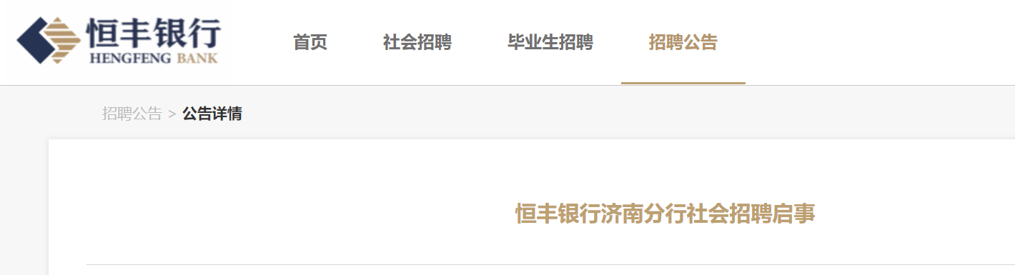 2024恒豐銀行山東濟南分行社會招聘啟事已發(fā)布,報名截止時間:短期招聘截至2024年3月23日,長期招聘截至2024年6月30日?,F(xiàn)將招聘公告原文發(fā)布如下: