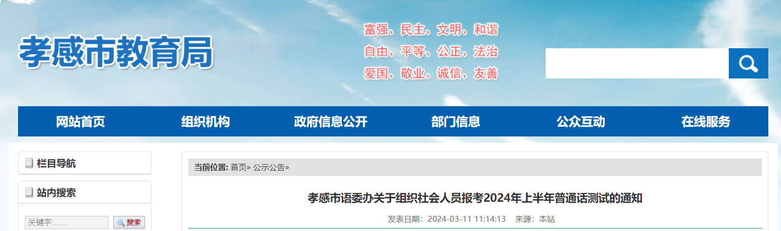 從孝感市教育局獲悉,2024上半年湖北孝感普通話報名時間為3月18日-24日,考試時間為4月13、14、20日,具體詳情如下: