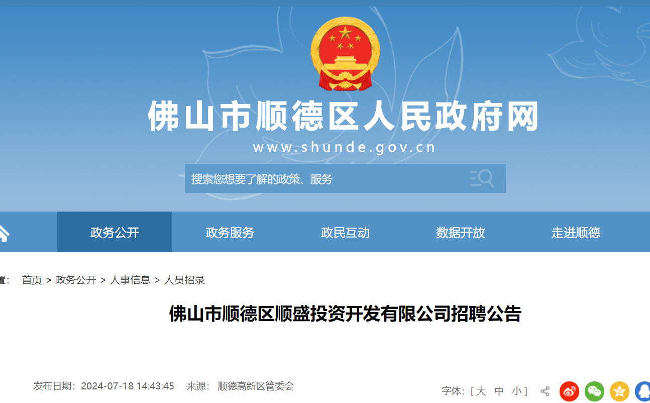 2024廣東佛山市順德區(qū)順盛投資開發(fā)有限公司招聘公告已發(fā)布,報名時間:2024年7月18日至7月25日。現(xiàn)將招聘公告原文發(fā)布如下: