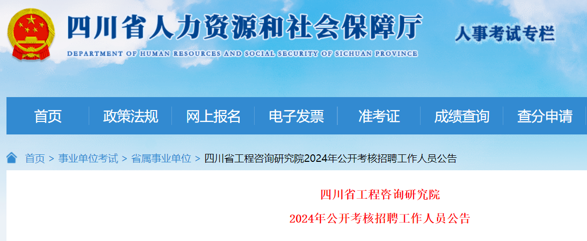 面向社會公開考核招聘符合《四川省工程咨詢研究院2024年公開考核招聘工作人員崗位和條件要求一覽表》(詳見附件1)的相關(guān)崗位條件要求人員。