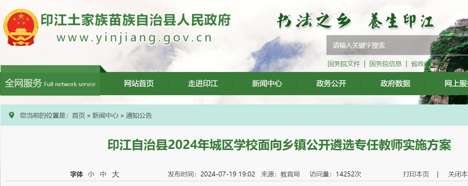 2024年7月19日在“印江自治縣人民政府網(wǎng)站”(http://www.yinjiang.gov.cn/)公開發(fā)布遴選公告。
