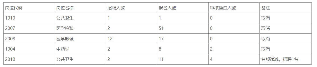 根據(jù)《2024年滎陽(yáng)市公開(kāi)招聘基層醫(yī)療衛(wèi)生事業(yè)單位工作人員公告》規(guī)定:“各崗位報(bào)名并通過(guò)資格初審的人數(shù)與擬招聘人數(shù)比例達(dá)不到5∶1的,經(jīng)滎陽(yáng)市公開(kāi)招聘基層醫(yī)療衛(wèi)生事業(yè)單位工作人員領(lǐng)導(dǎo)小組批準(zhǔn),可適當(dāng)降低開(kāi)考比例,但不得低于3∶1,如降低后仍達(dá)不到要求的,該崗位的招聘名額遞減直至取消。對(duì)于崗位取消的報(bào)考者可在報(bào)名信息截止時(shí)間后1日內(nèi)重新選報(bào)其他崗位。不愿重新選報(bào)的,退還所繳的考務(wù)費(fèi)。”現(xiàn)將取消的崗位具體情況公告如下: