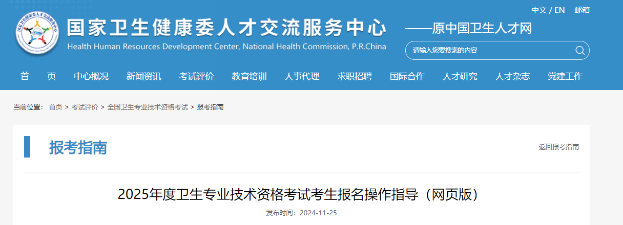 從國家衛(wèi)生健康委人才交流服務(wù)中心獲悉,2025年主管護師考試考生報名操作指導(dǎo)(網(wǎng)頁版)已公布,具體詳情如下: