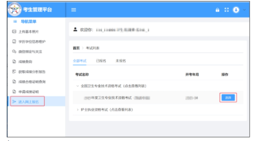 1.點擊【進入網(wǎng)上報名】,選擇“xxxx年度衛(wèi)生專業(yè)技術(shù)資格考試(含主管護師考試)”。
