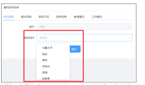 (1)下拉選擇“報名地市”。