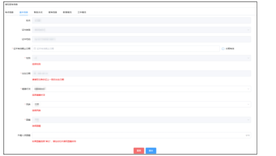 1.姓名、證件類型、證件號碼、性別、出生日期和國籍不可修改。