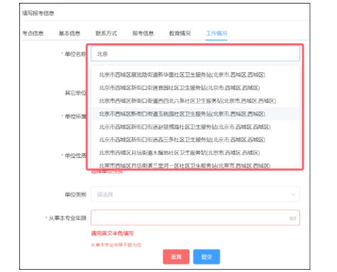“單位名稱”需要輸入關(guān)鍵字(不可輸入單位縮寫、簡稱)檢索后,在列表中選擇相應(yīng)單位,不可自行填寫。