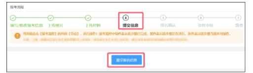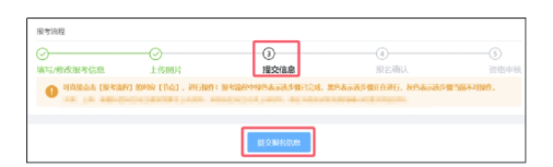(8)上傳照片后系統(tǒng)將跳轉(zhuǎn)至【提交報名信息】頁,考生也可點擊【報考流程】中的“提交信息”節(jié)點,確認無誤后點擊“提交報名信息”。