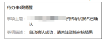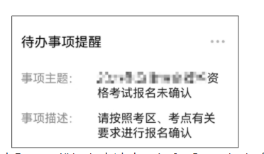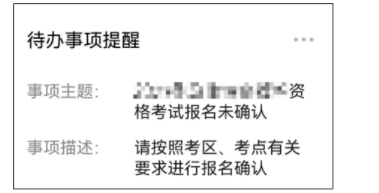 請考生仔細查看“待辦事項提醒”的內(nèi)容,未自動確認的務(wù)必按照所在考區(qū)、考點要求進行報名確認,未按時完成報名確認的視為主動放棄考試。