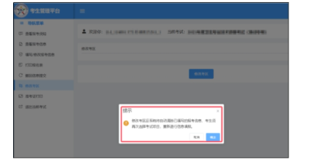 修改考區(qū)操作將會清空此項目下已經(jīng)填寫的報名信息,但不影響注冊信息和基本信息。