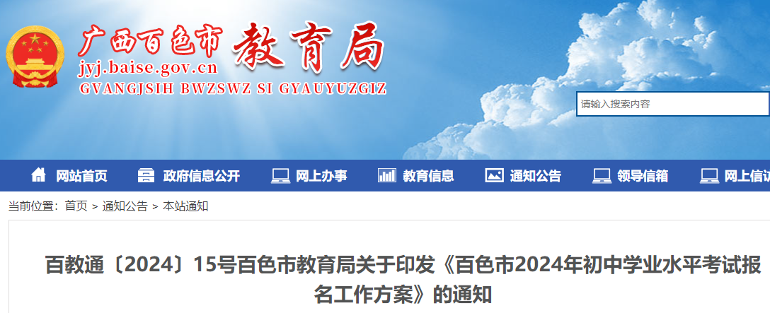 2024年廣西百色中考報名網(wǎng)站 點擊進(jìn)入
