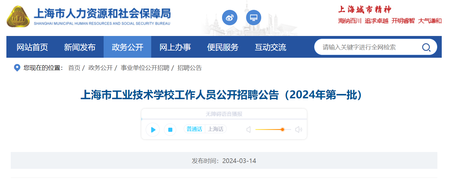 2024年上海市工業(yè)技術(shù)學(xué)校第一批公開招聘工作人員公告已發(fā)布,本次招聘接受簡(jiǎn)歷截至?xí)r間為2024年3月31日?,F(xiàn)將招聘公告原文發(fā)布如下: