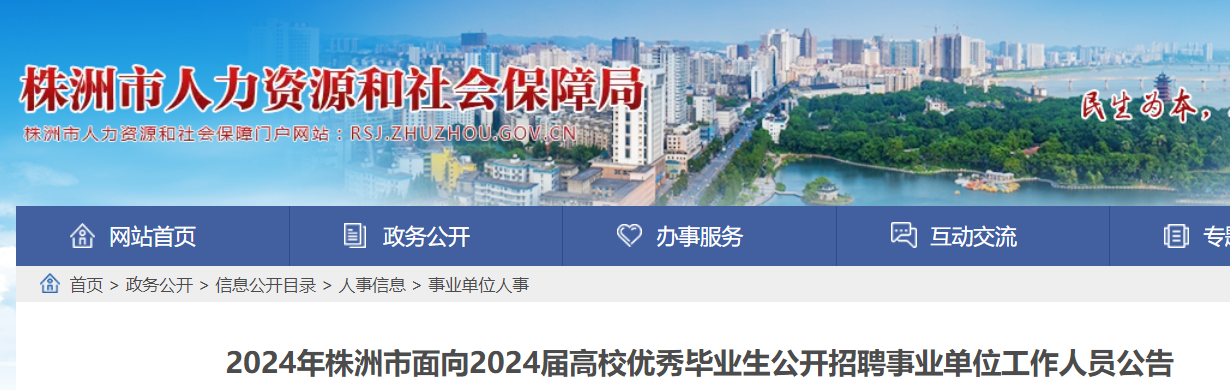 根據(jù)《事業(yè)單位人事管理?xiàng)l例》(中華人民共和國國務(wù)院令第652號)、《湖南省事業(yè)單位公開招聘人員辦法》(湘人社發(fā)〔2019〕1號)等文件要求,結(jié)合我市編制、崗位空缺情況和工作需要,經(jīng)研究決定,面向2024屆高校優(yōu)秀畢業(yè)生公開招聘事業(yè)單位工作人員。現(xiàn)將有關(guān)事項(xiàng)公告如下: