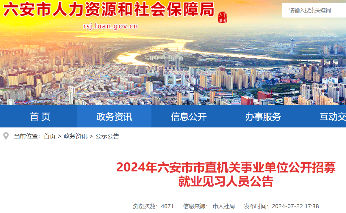 根據(jù)省就業(yè)工作領(lǐng)導(dǎo)小組辦公室《關(guān)于做好2024年高校畢業(yè)生等青年就業(yè)創(chuàng)業(yè)工作的通知》(皖就辦〔2024〕1號)要求,現(xiàn)就2024年六安市市直機(jī)關(guān)事業(yè)單位公開招募就業(yè)見習(xí)人員有關(guān)事項(xiàng)公告如下: