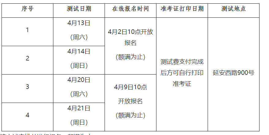 現(xiàn)將上海市教育考試院2024年4月測(cè)試安排公告如下: