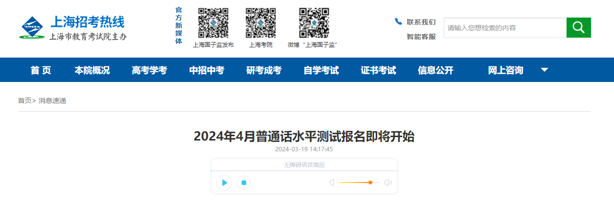 從上海市教育考試院獲悉,2024年4月上海普通話(huà)報(bào)名時(shí)間為4月2日10點(diǎn)起,考試時(shí)間為4月13、14、20、21日,具體詳情如下: