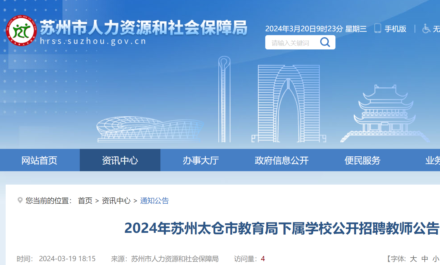 2024年江蘇蘇州太倉市教育局下屬學校公開招聘教師公告已發(fā)布,報名時間:2024年3月23日9:00-3月26日16:00,現(xiàn)將招聘公告原文發(fā)布如下:
