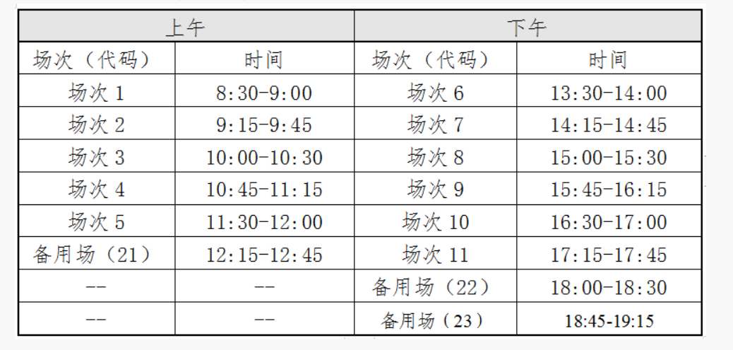 1.英語四級(jí)口語考試(CET-SET4)考試時(shí)間為5月18日(F121次),英語六級(jí)口語考試(CET-SET6)考試時(shí)間為5月19日(S121次),具體場(chǎng)次安排如下: