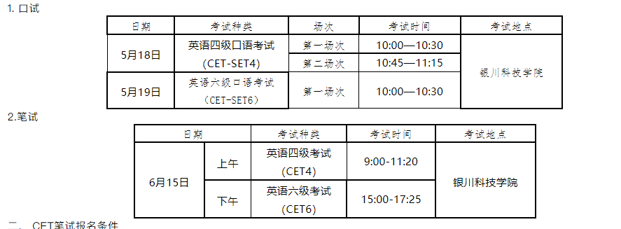 3.口試(CET-SET)為考生自愿報考,考生需先完成本次CET4筆試報名后,方可報考CET-SET4,完成本次CET6筆試報名后,可報考CET-SET6。
