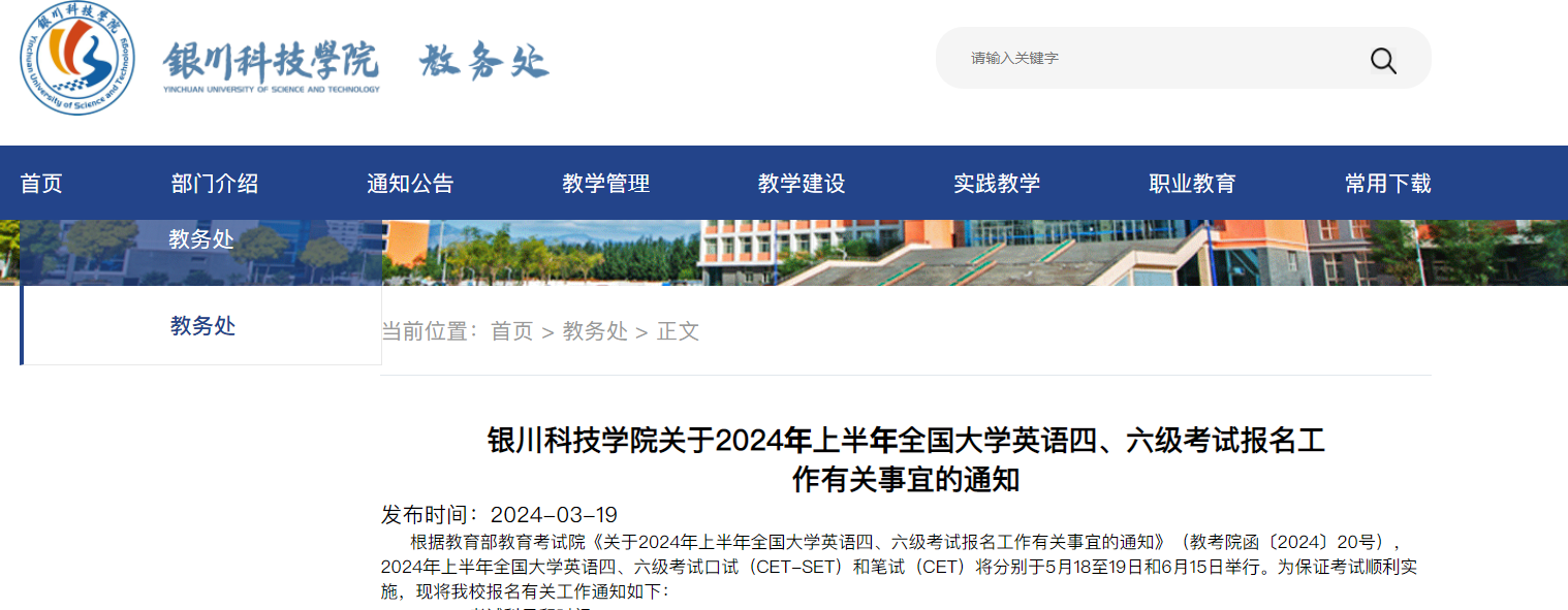 從銀川科技學(xué)院獲悉,寧夏銀川科技學(xué)院2024上半年英語四六級報名通知已公布,3月21日-28日報考,具體詳情如下: