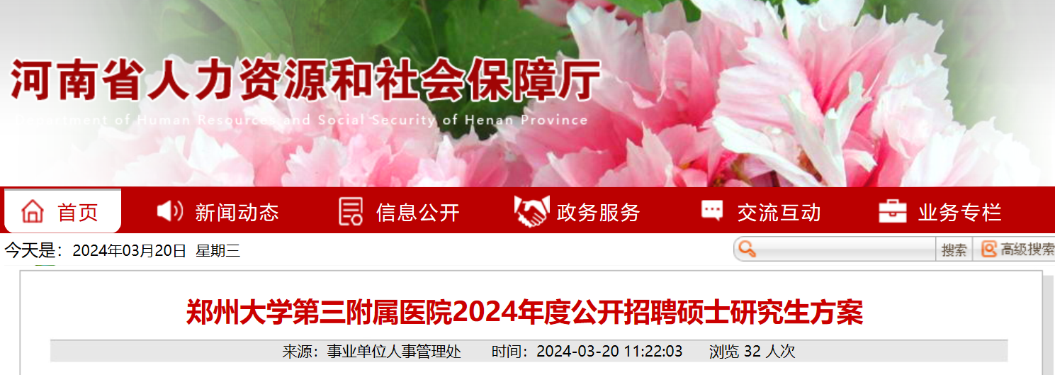 2024年鄭州大學第三附屬醫(yī)院公開招聘碩士研究生一覽表