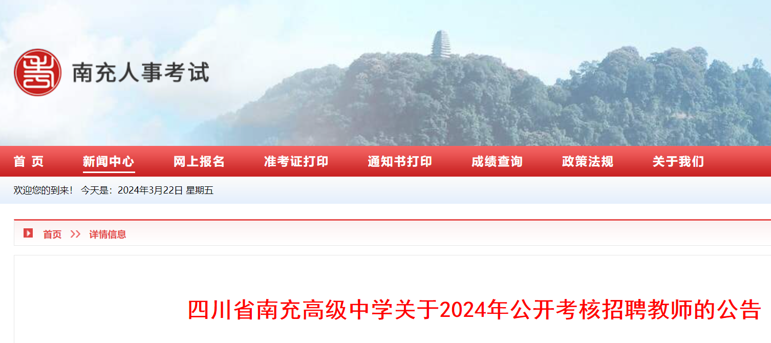根據(jù)《事業(yè)單位人事管理條例》、《事業(yè)單位公開招聘人員暫行規(guī)定》(原人事部6號令)、《四川省事業(yè)單位工作人員招聘工作試行辦法》(川人發(fā)〔2006〕9號)等文件精神,結(jié)合學(xué)校需求,現(xiàn)將四川省南充高級中學(xué)2024年公開考核招聘教師有關(guān)事項公告如下: