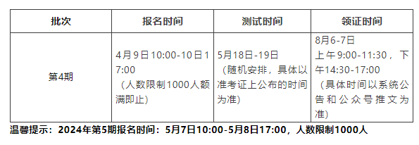 溫馨提示:2024年第5期報名時間:5月7日10:00-5月8日17:00,人數(shù)限制1000人