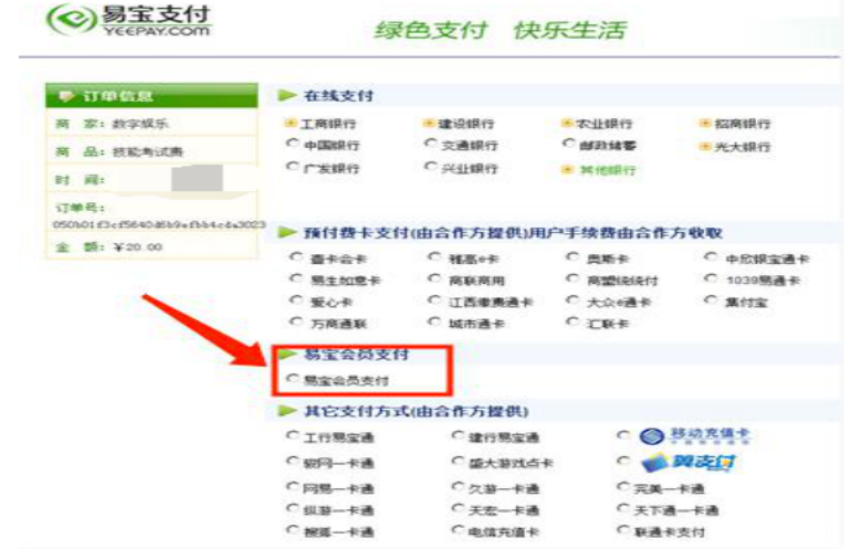 建議選擇“易寶會員支付”后,點擊“易寶支付”。