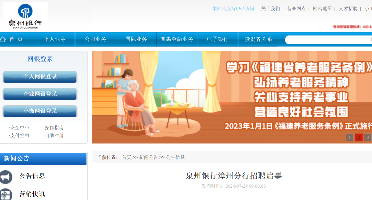 2024泉州銀行福建漳州分行招聘啟事已發(fā)布,現(xiàn)將招聘公告原文發(fā)布如下: