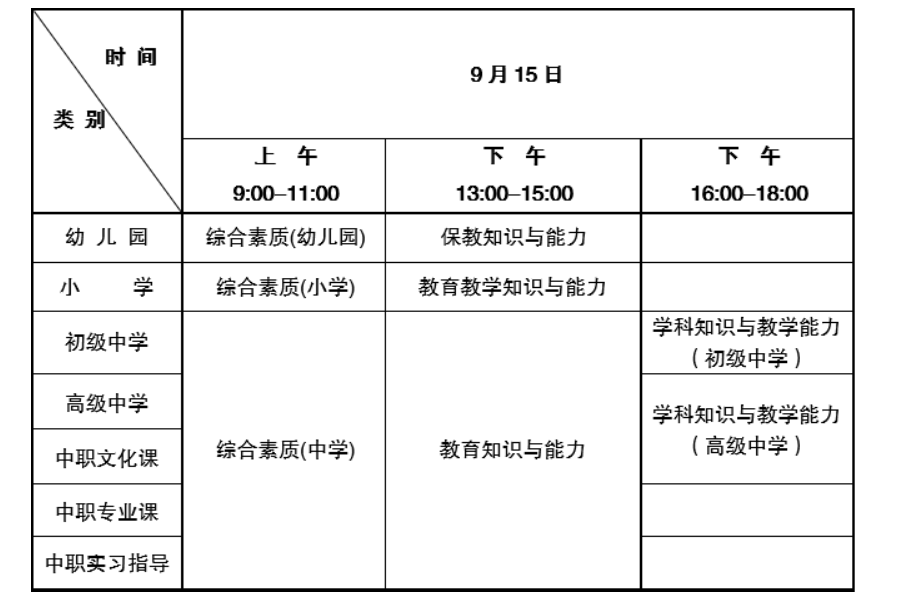 考試于2024年9月15日舉行,所有考試科目均采用紙筆方式進(jìn)行,具體安排如下: