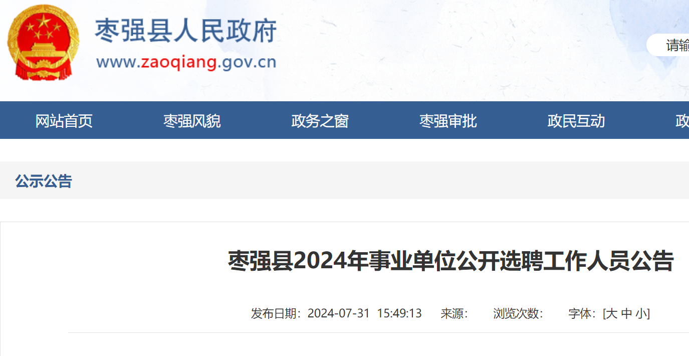 通過棗強縣人民政府網(wǎng)發(fā)布招聘信息。