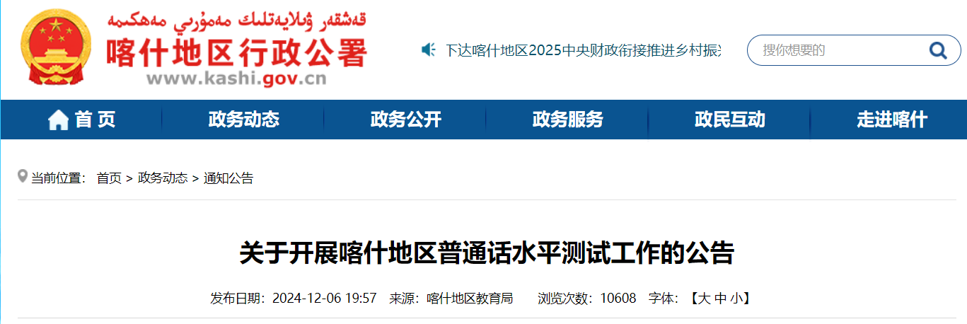 從喀什地區(qū)行政公署獲悉,2024年12月新疆喀什地區(qū)普通話考試時間及報(bào)名時間安排已公布,12月11日11:00開始,具體詳情如下: