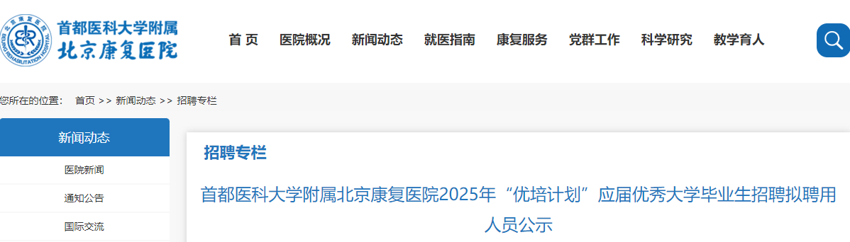 首都醫(yī)科大學(xué)附屬北京康復(fù)醫(yī)院2025年“優(yōu)培計(jì)劃”應(yīng)屆優(yōu)秀大學(xué)畢業(yè)生招聘擬聘用人員名單