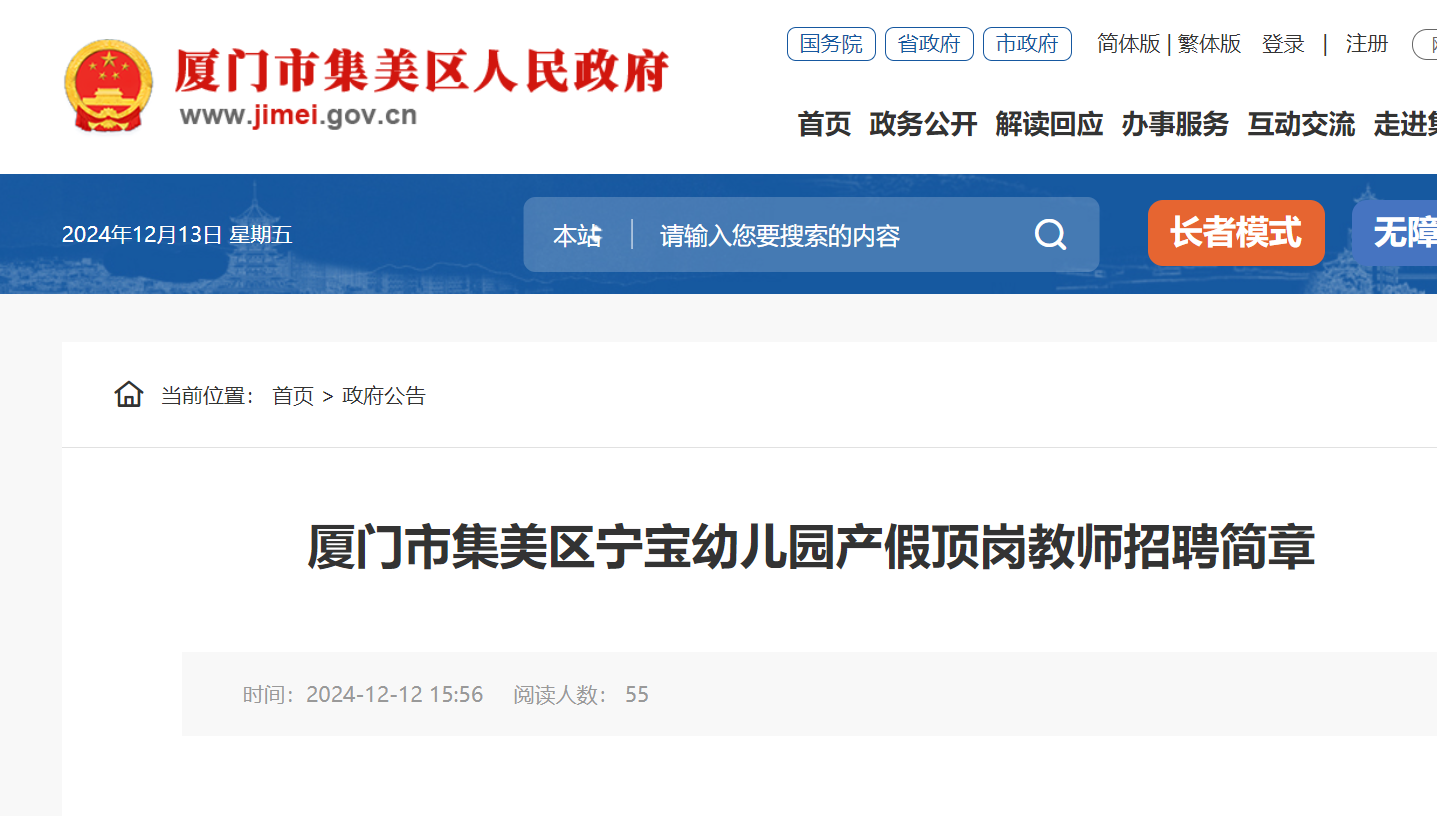 2024年福建廈門市集美區(qū)寧寶幼兒園產(chǎn)假頂崗教師招聘簡章已發(fā)布,報名時間:即日起至2024年12月27日。現(xiàn)將招聘公告原文發(fā)布如下: