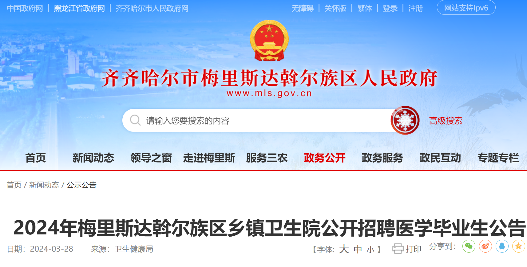 按照《關(guān)于印發(fā)〈黑龍江省鄉(xiāng)鎮(zhèn)衛(wèi)生院2024年公開(kāi)招聘醫(yī)學(xué)畢業(yè)生實(shí)施辦法〉的通知》要求,梅里斯達(dá)斡爾族區(qū)衛(wèi)生健康局(以下簡(jiǎn)稱(chēng)區(qū)衛(wèi)生健康局)會(huì)同區(qū)人社、編辦等部門(mén)共同實(shí)施2024年鄉(xiāng)鎮(zhèn)衛(wèi)生院招聘醫(yī)學(xué)畢業(yè)生計(jì)劃,現(xiàn)將有關(guān)事宜公告如下: