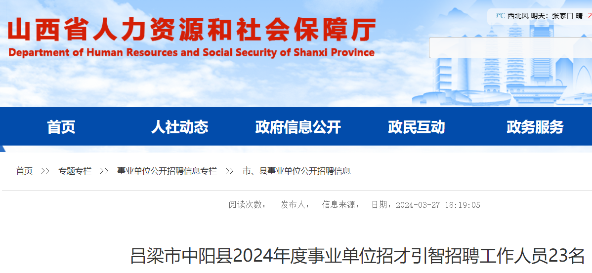 近日,呂梁市中陽縣2024年度事業(yè)單位招才引智招聘工作人員23名,其中2024年應(yīng)屆畢業(yè)生崗位11個(gè)。