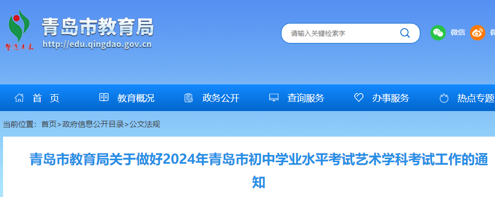 從青島市教育局了解到,山東青島2024年青島市初中學(xué)業(yè)水平考試藝術(shù)學(xué)科考試工作的通知已公布,考試時(shí)間:2024年4月15日至4月18日。具體如下: