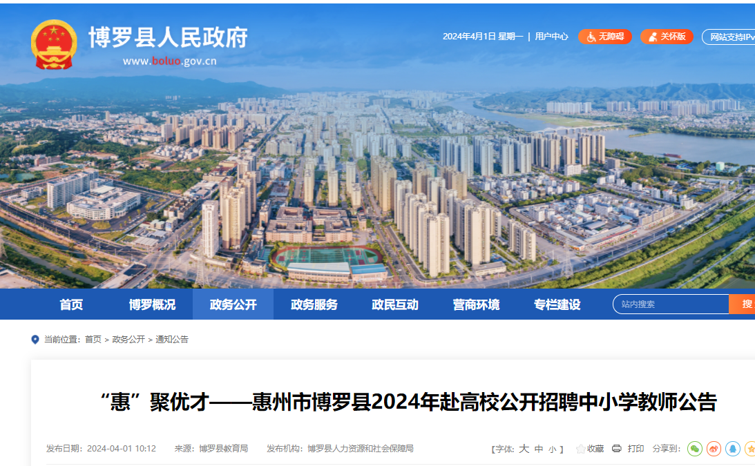 2024年廣東惠州市博羅縣赴高校公開招聘中小學(xué)教師公告已發(fā)布,網(wǎng)上報名時間:2024年4月7日上午8:30—2024年4月11日下午5:30?,F(xiàn)將招聘公告原文發(fā)布如下: