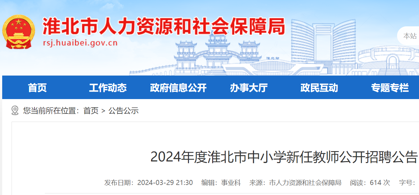 2024年度安徽淮北市中小學(xué)新任教師公開(kāi)招聘公告已發(fā)布,報(bào)名時(shí)間為4月7日8:00至4月10日17:00,逾期不再補(bǔ)報(bào)?,F(xiàn)將招聘公告原文發(fā)布如下: