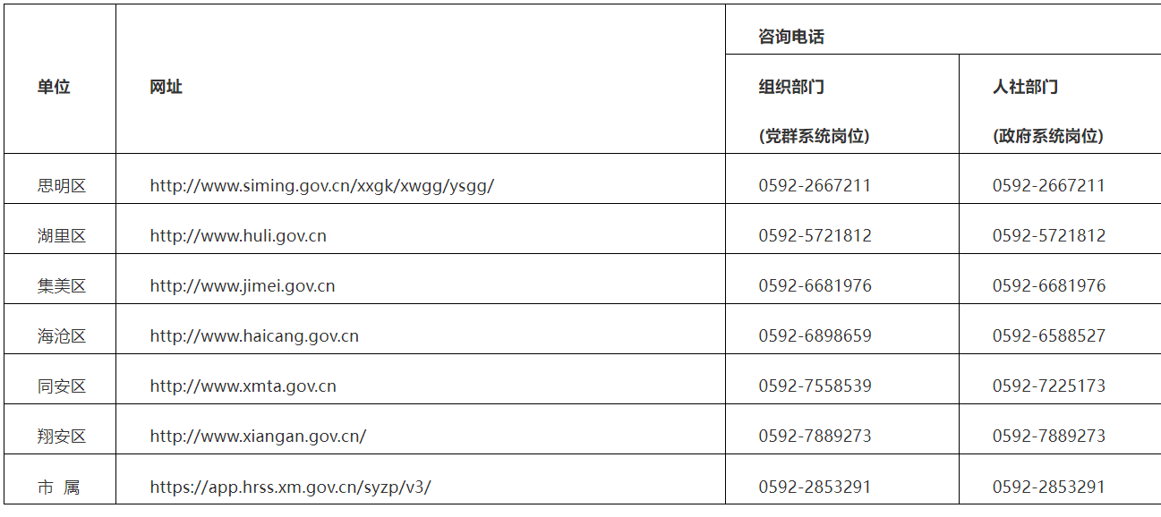(考生崗位報名入口:www.fj99.org.cn或https://app.hrss.xm.gov.cn/syzp/v3/)