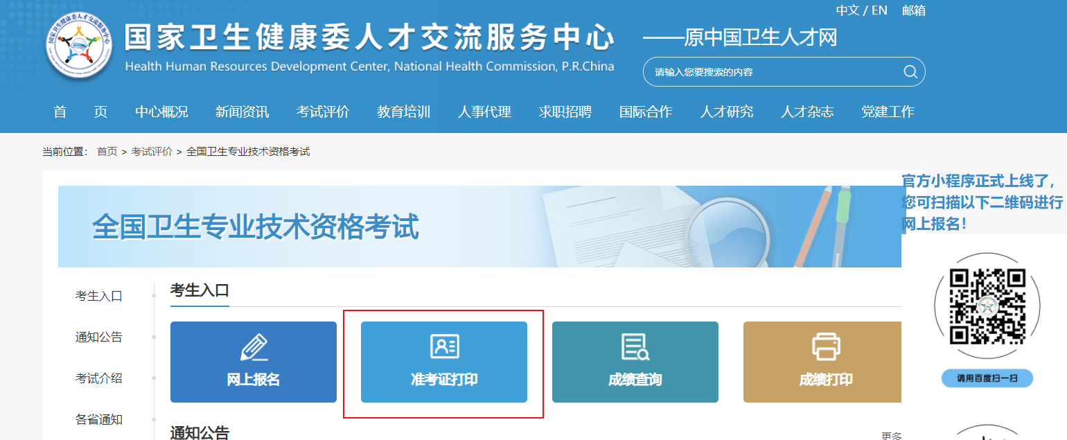 (衛(wèi)生專業(yè)技術(shù)資格考試準(zhǔn)考證打印入口)